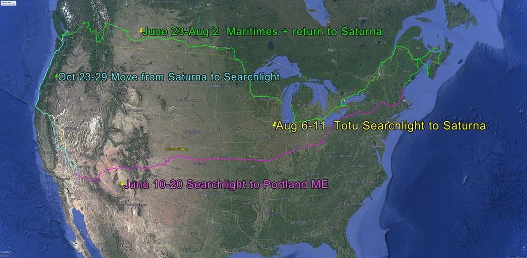 Then, we were invited to our niece’s wedding in Portland, Maine in June, so Wayne came up with the idea of taking a little trial trip in Lance. It turned into a 3-month, 10,000-mile test run through the US and Canada that landed us at Saturna Island in British Columbia.